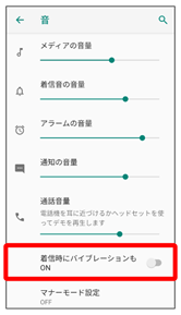 | バイブレーションに切り替え | 電源キーと音量大キーを同時に押したときにマナーモード(バイブレーション)に切り替えるかどうかを設定します。 | |