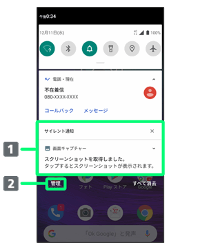 通知パネルに通知が表示されるとき、音やバイブレーションが動作しないように設定できます。