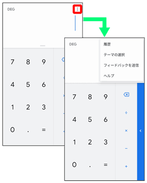 メニューのアイコンをタップすると、その画面で利用できる機能の設定や項目が画面に表示されます。