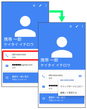 また、画面をロングタッチすると利用できる設定や項目が表示される画面もあります。