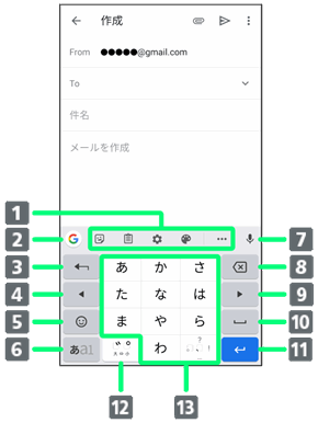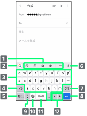 | 設定 | キーの表示やキーボードのレイアウト、キー操作したときの動作について設定できます。 | |