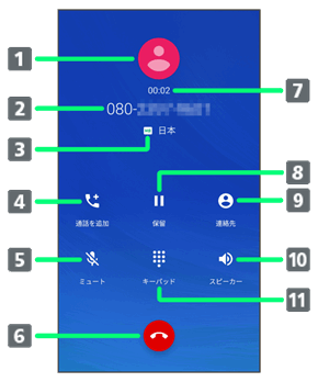通話中は、アイコンをタップすることにより、次の機能が利用できます。