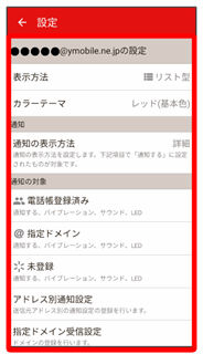 | 指定ドメイン | 指定ドメインに登録した相手からメールを受信したときの通知方法を設定します。 | |