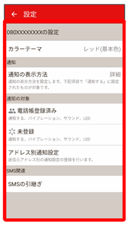 | 未登録 | 電話帳に未登録の相手からメールを受信したときの通知方法を設定します。 | |