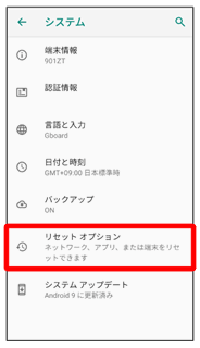 | リセット オプション | ネットワーク設定のリセットやアプリの設定のリセット、初期状態にリセットができます。 | |