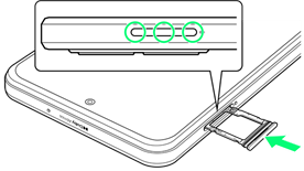 - SIMおよびmicroSDカードトレイの挿入口に、SIMおよびmicroSDカードトレイをまっすぐに差し込む