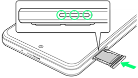 - SIMおよびmicroSDカードトレイの挿入口に、SIMおよびmicroSDカードトレイをまっすぐに差し込む