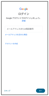 - Google アカウントを設定しているほかの端末からデータをコピーする場合は、次へをタップして、画面の指示に従って操作してください。