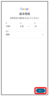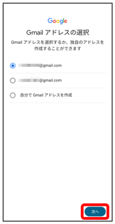 - 自分でGmail™ アドレスを作成する場合は、自分で Gmail アドレスを作成