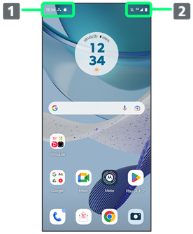 ステータスバーは、本機の画面上部にあります。新着メールなどの通知アイコンや、本機の状態をお知らせするステータスアイコンが表示されます。