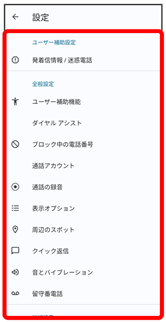 | 発着信情報/迷惑電話 | ・発信者番号とスパムの番号を表示 連絡先にない電話番号の発信者名を表示するかどうかを設定します。 ・迷惑電話をブロック 迷惑電話の疑いがある通話をブロックします。 |