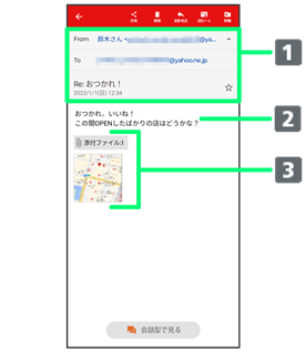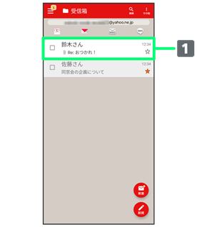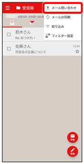 - 受信箱画面で下にフリックしても新着メールの確認ができます。