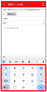 - CcやBccで送信したい場合は、Cc,Bccをタップして、