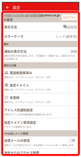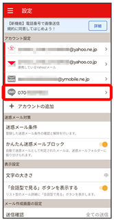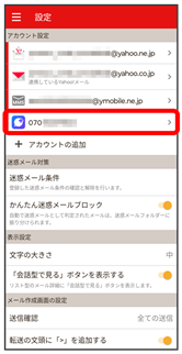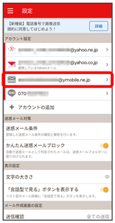 - Y!mobile メール設定画面で、Y!mobile メールのアカウントをタップ