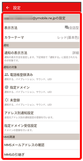 - Y!mobileメール設定画面で、+メッセージのアカウントをタップ