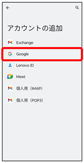 アカウントの追加画面が表示されます。