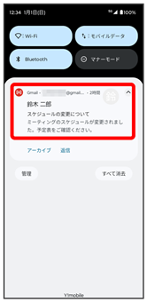 通知パネルが表示されます。