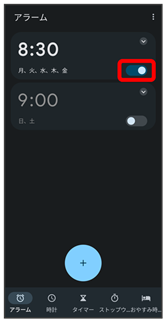 アラーム設定時刻になると、アラーム音や振動でお知らせします。