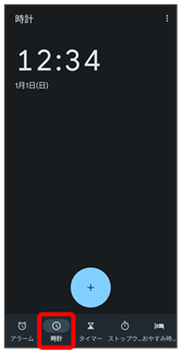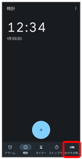 アラームや世界時計、タイマー、ストップウォッチ、おやすみ時間を利用できます。