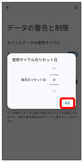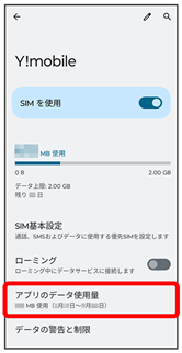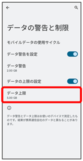 モバイルデータ通信の使用量を確認したり、使用を制限することができます。