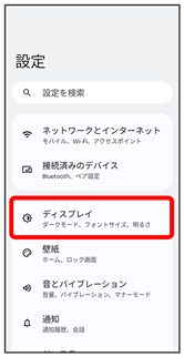 | ナイトディスプレイ | 画面の青色を抑えた表示にするかどうかを設定します。 | |