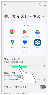 | 表示サイズとテキスト | 画面に表示される画像やアイコン、文字などの大きさを設定します。 | |