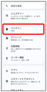 電池の使用状況を確認したり、電池の消費を抑える設定などができます。