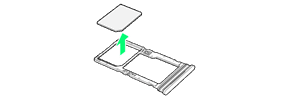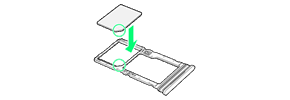 • ↓USIMカードをSIMおよびmicroSDカードトレイに取り付ける
