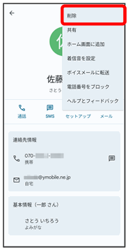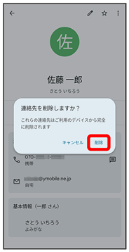 連絡先が削除されます。