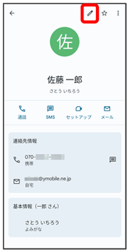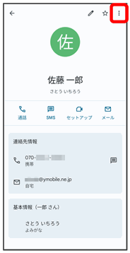連絡先詳細画面が表示されます。