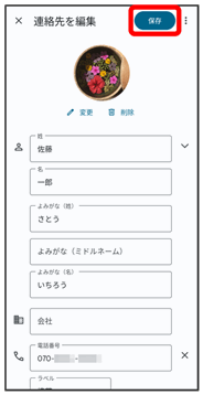 連絡先の登録が完了します。