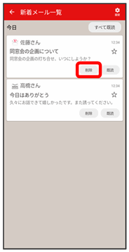 • ↓新着メール一覧画面で、削除する新着メールの削除