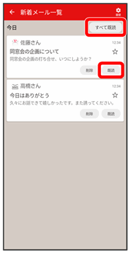 • すべて既読をタップすると、タップした日のすべてのメールが既読になります。