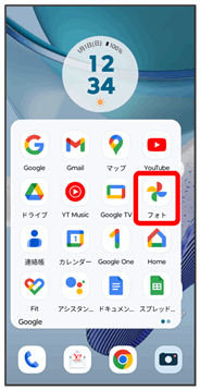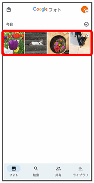 内部ストレージやSDカード、Googleのオンラインストレージに保存されている写真/動画を表示します。ここでは、Google アカウントにログインしている状態で説明します。
