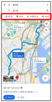 Google マップでは、現在地の表示や目的地までの道案内などの機能を利用できます。交通状況を表示したり、航空写真で景色を確認することもできます。