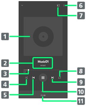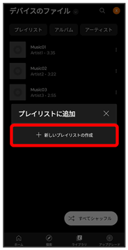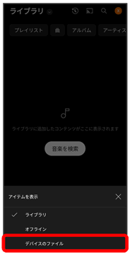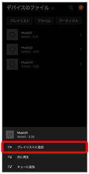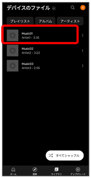 公式アルバムやミュージックビデオなど幅広い音楽コンテンツが楽しめます。ここでは内部ストレージ/SDカードに保存されている音楽を再生する操作を例に説明します。