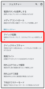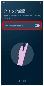 クイック起動を有効にすると、本機の背面をダブルタップして、設定した動作やアプリの起動ができます。