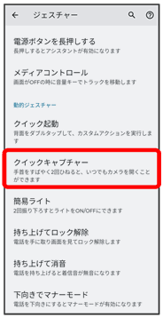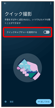 クイックキャプチャーを有効にすると、手首をすばやく2回ひねるだけでカメラを起動することができます。