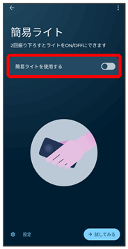 簡易ライト機能を有効にすると、本機を2回振り下ろす動作でライトのON/OFFを切り替えることができます。