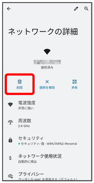 Wi-Fiネットワークの削除が完了します。