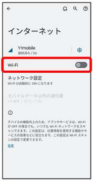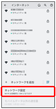 Wi-Fi設定画面が表示されます。