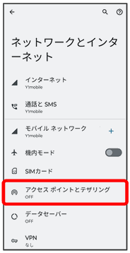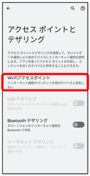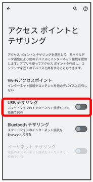 テザリング画面が表示されます。