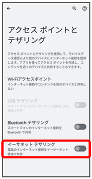 イーサネットテザリングが有効になります。