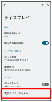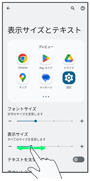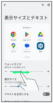 | 表示サイズとテキスト | 画面に表示される画像やアイコン、文字などの大きさを設定します。 | |