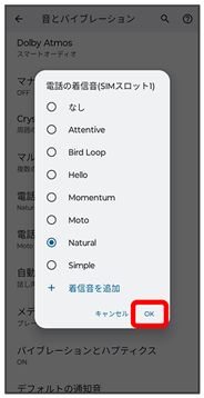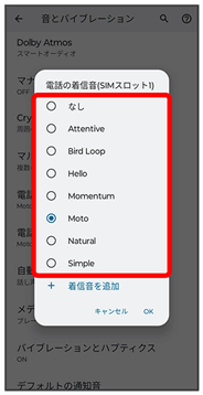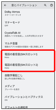 | 電話の着信音(SIMスロット1) | SIMスロット1の電話の着信音を設定します。 | |