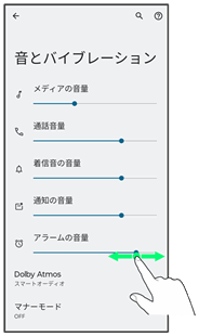 アラーム音が再生され、音量が確認できます。