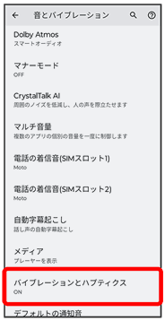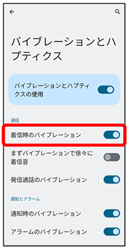 | バイブレーションとハプティクス | バイブレーションに関する設定ができます。 | |