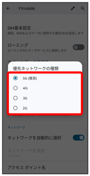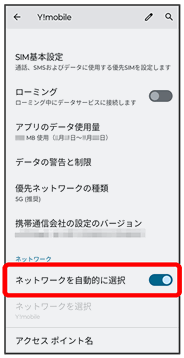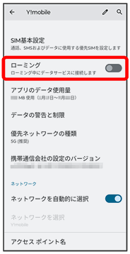 その他、必要に応じて通信方式、データローミングの設定を変更してください。
