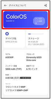 ColorOS 13(Android 13)からColorOS 14(Android 14)へのバージョンアップ手順を説明します。