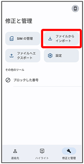 SDカードに保存(バックアップ)した連絡先データを読み込み(インポート)できます。